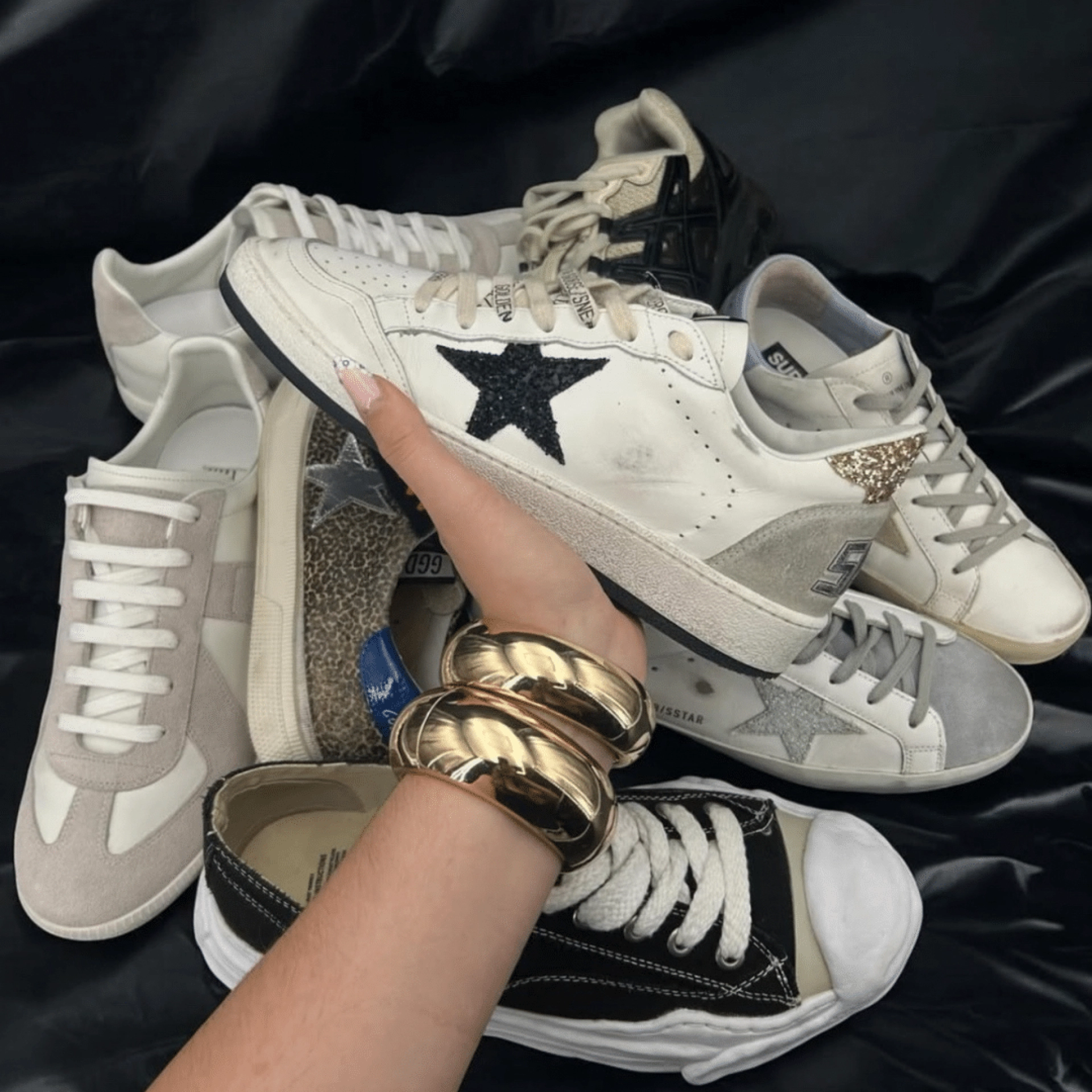 Côté mode, tout dépend de ton style : les Golden Goose pour une vibe chic-décontractée, ou les Alexander McQueen si tu veux une silhouette plus habillée.
